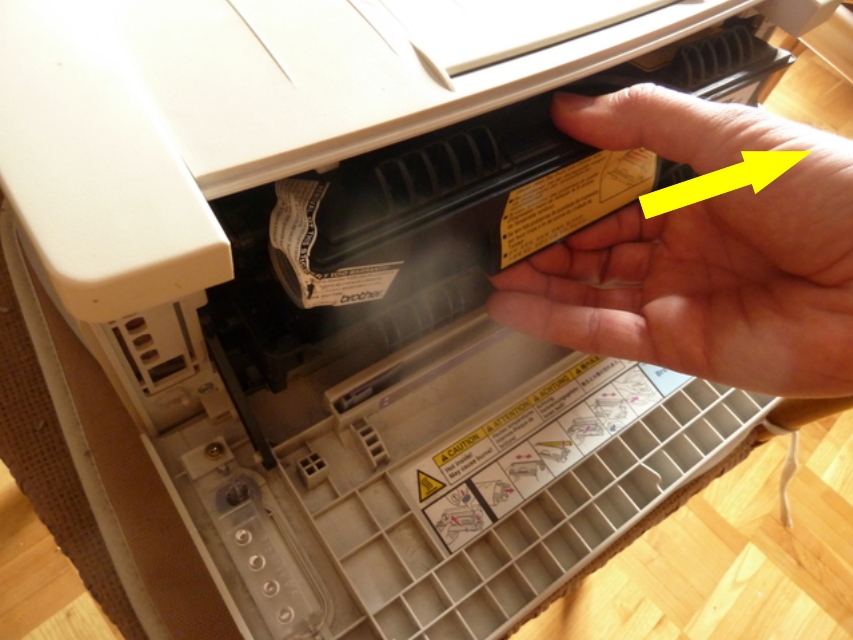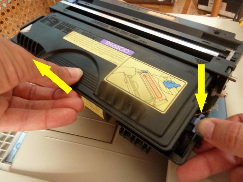 1. Saca el tambor o bloque que contiene al tóner (puede estar un poco duro, pero sale).