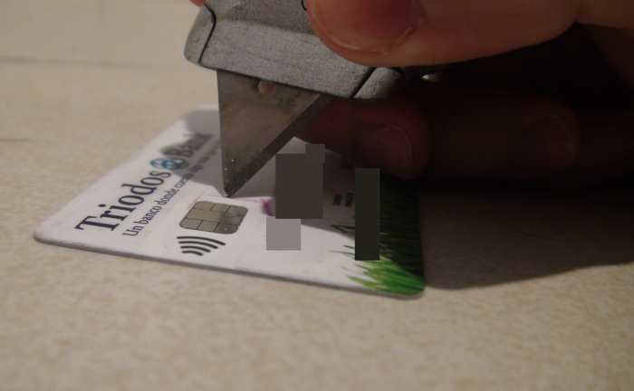 - 10) Listo. Solo queda probar en el lector de tarjetas de cualquier tienda para comprobar si se ha desactivado la función de pago sin contacto o a distancia (contactless) o se necesitan cortes adicionales para inutilizar el circuito de la antena.